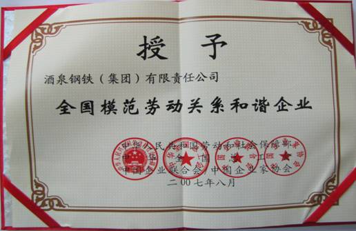 全國模范勞動關系和諧企業(yè)