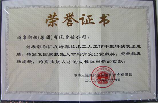 酒鋼集團榮獲國家技能人才培育突出貢獻獎