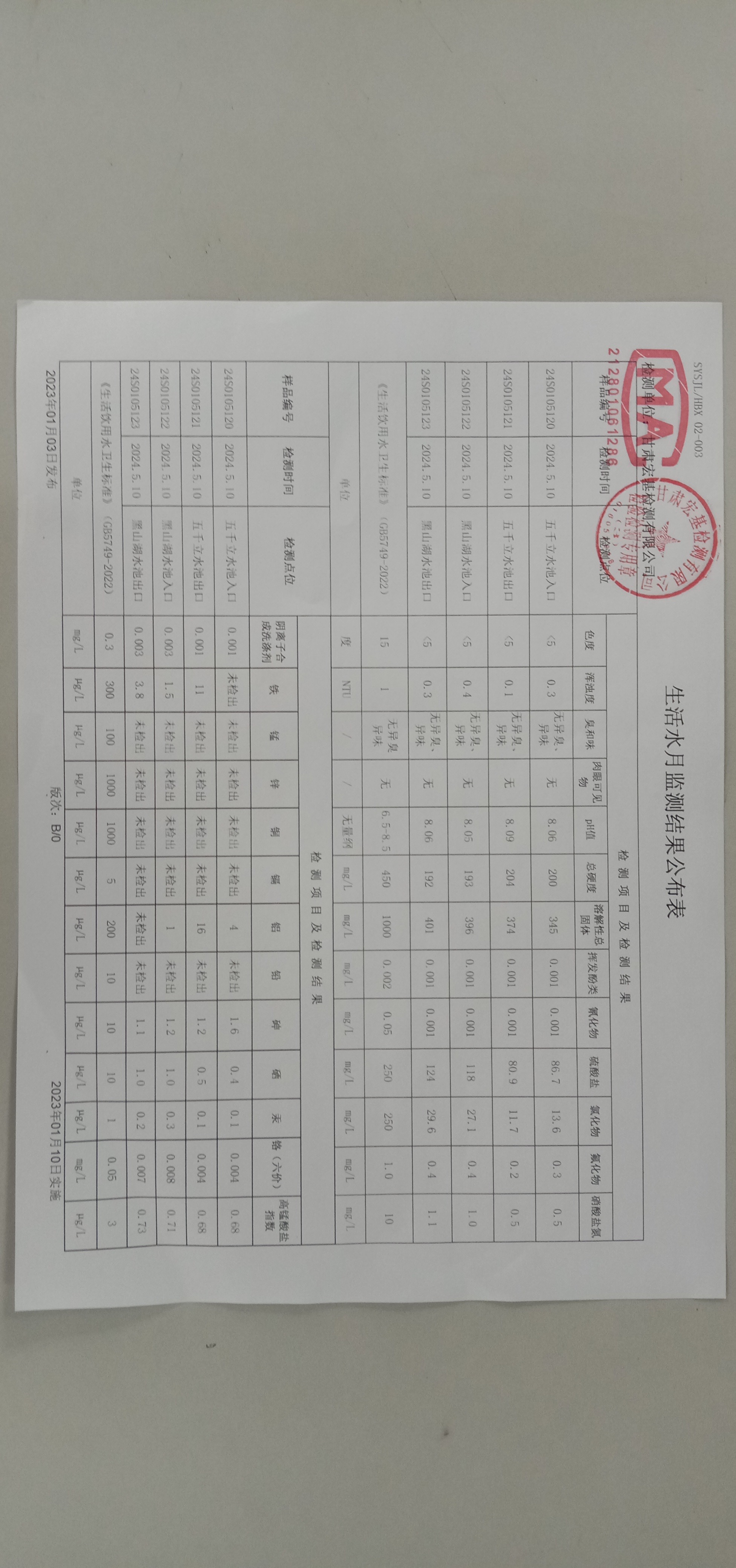 甘肅潤源環(huán)境資源科技有限公司水源地水質(zhì)2024年第二季度公示