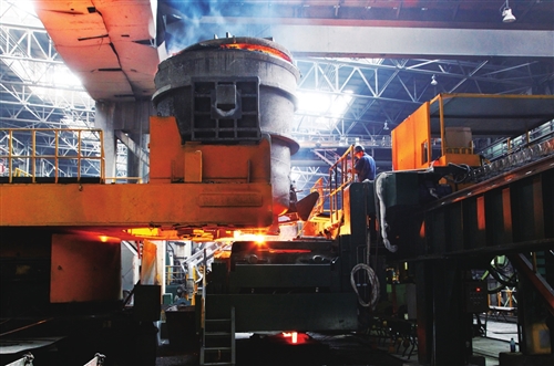 去年以來,宏興股份公司煉軋廠連鑄作業(yè)區(qū)大力開展科技攻關、崗位創(chuàng)新,在生產作業(yè)中實行“窄溫度、窄拉速”精細化控制,實現全年“零故障、零事故”目標。圖為該作業(yè)區(qū)1號連鑄機生產現場?!⌒な缽姅z